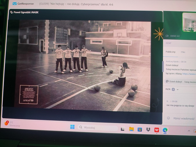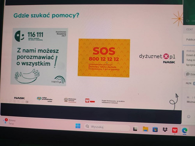 Osiemnastego listopada uczniowie klas czwartych wzięli udział w ważnym i niezwykle aktualnym webinarze dotyczącym bezpieczeństwa w sieci oraz przeciwdziałania cyberprzemocy. Spotkanie odbyło się w ramach projektu dla klas 4–6 Cyberprofilaktyka 3.0 NASK., a nasi czwartoklasiści uczestniczyli w nim pod opieką swoich wychowawczyń.