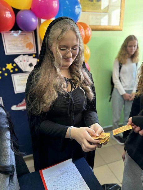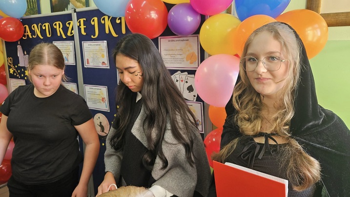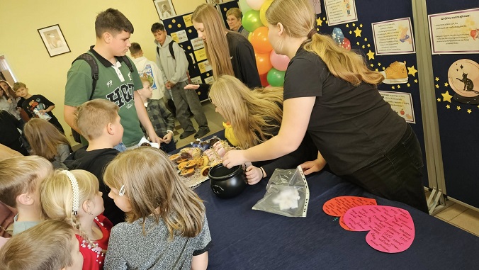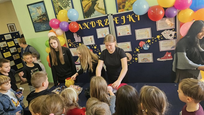 Uczennice klasy 8 działające w Samorządzie Uczniowskim przygotowały dla młodszych kolegów i koleżanek magiczne wróżby, które cieszyły się ogromnym zainteresowaniem.