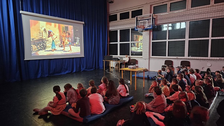 Klasy 0–3 przeniosły się do słonecznej Italii, oglądając bajkę „Luca”, natomiast uczniowie klas 4–6 zanurzyli się w niezwykły świat fantazji podczas seansu filmu „Mary Poppins Powrót”.