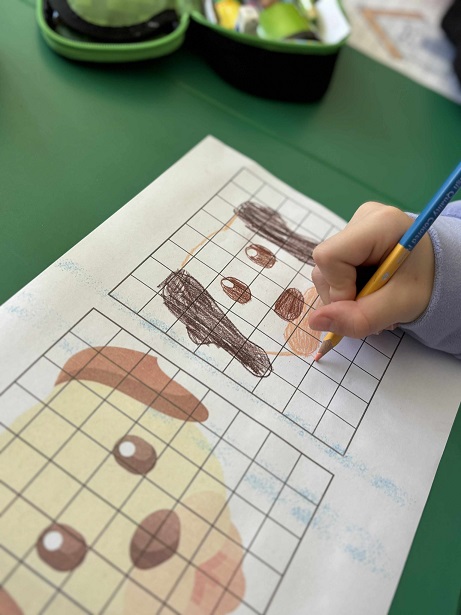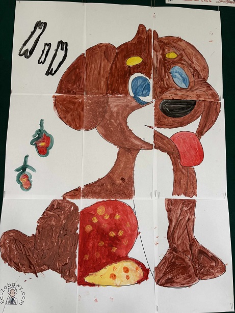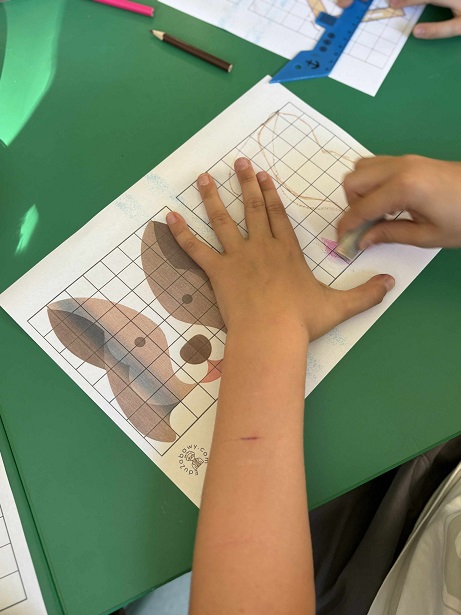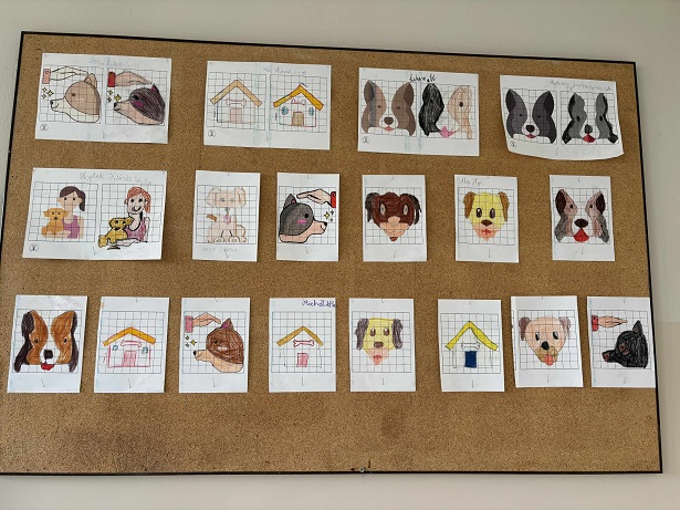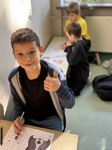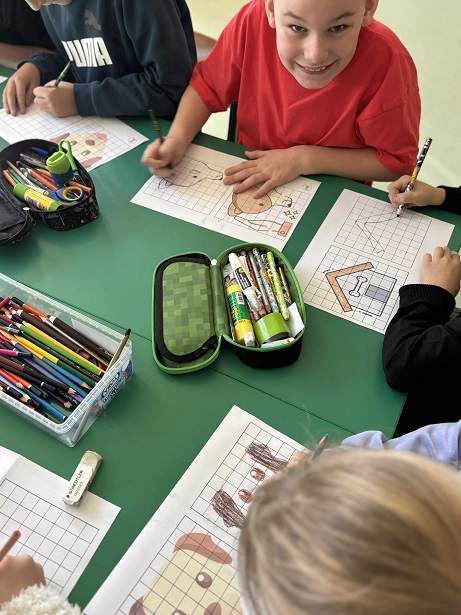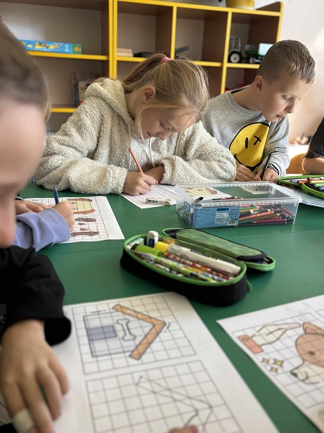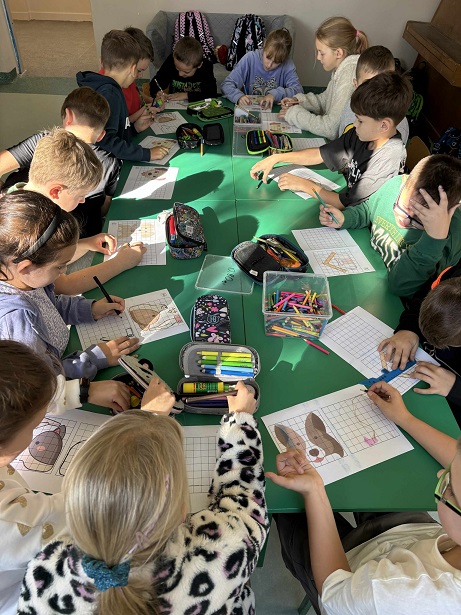 - przenosili obraz psa na siatkę kwadratów, ćwicząc spostrzegawczość i precyzję,
