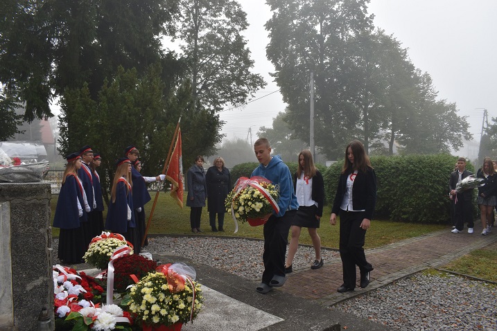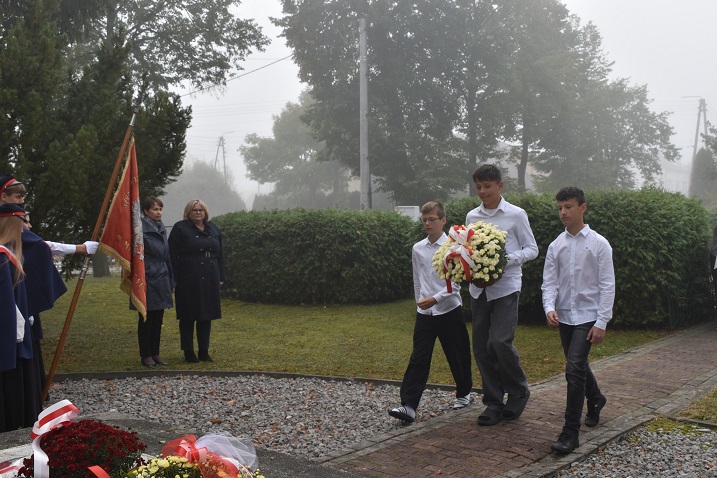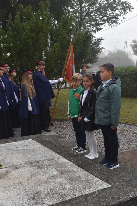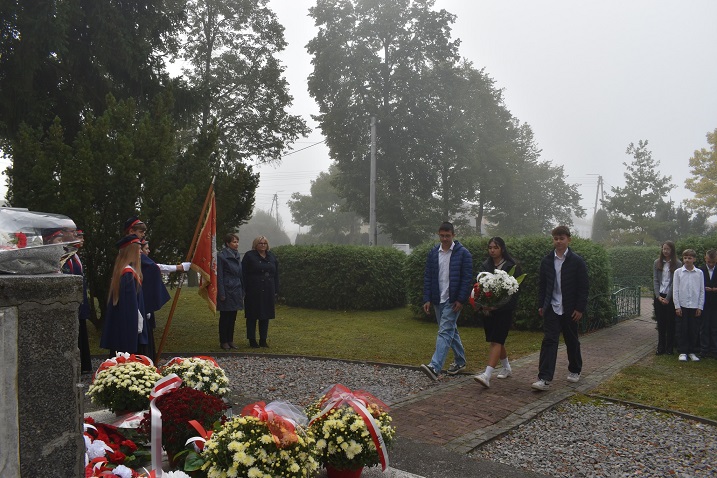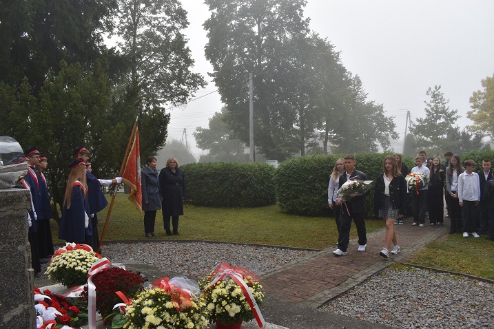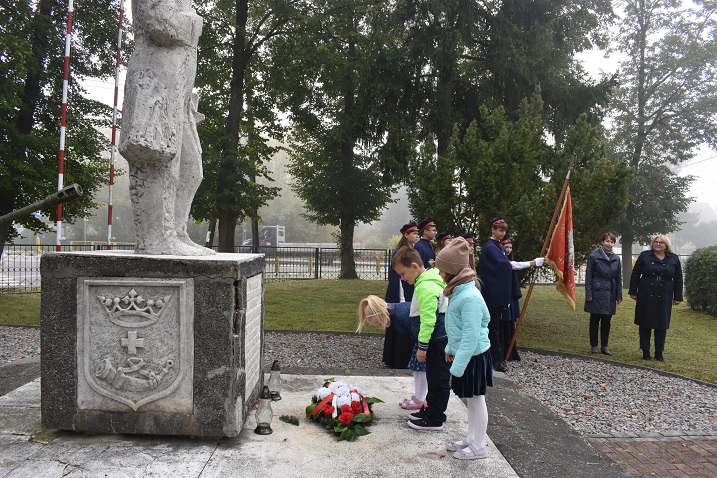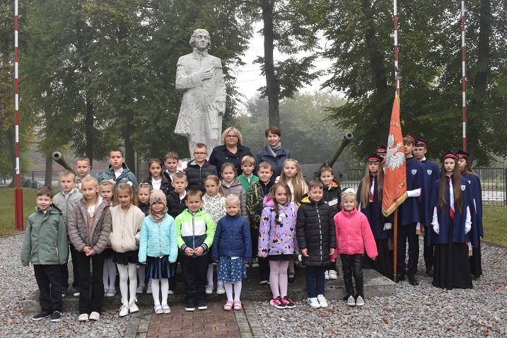 Na zakończenie uroczystości delegacje klas wraz ze sztandarem szkoły i Dyrekcją złożyły kwiaty pod pomnikiem Tadeusza Kościuszki.