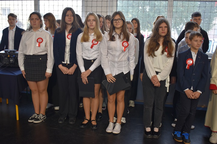 Był to dzień galowy – uczniowie wystąpili w odświętnych strojach, a uroczystość rozpoczęła się wspólnym odśpiewaniem Hymnu Szkoły, zaś zakończyła Hymnem Państwowym.