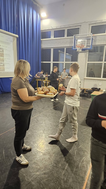 Dzięki kocom, poduszkom i wyjątkowej atmosferze sala gimnastyczna zamieniła się w prawdziwą salę kinową. Nie zabrakło pysznego kakao zapewnionego przez szkołę oraz jogurtów i słodkiego pieczywa od naszych sponsorów. Było dużo rozmów, śmiechu i wspólnie spędzonego czasu.