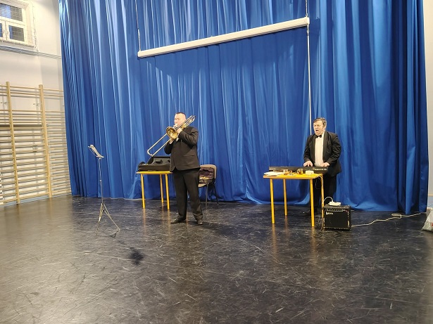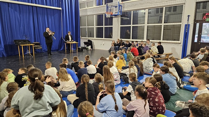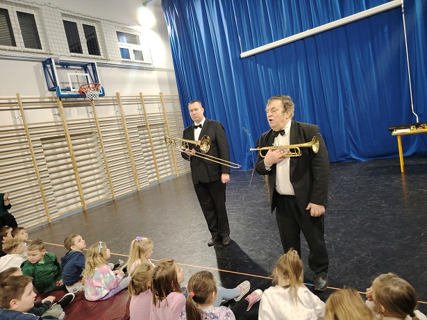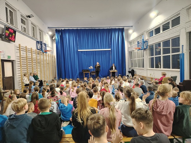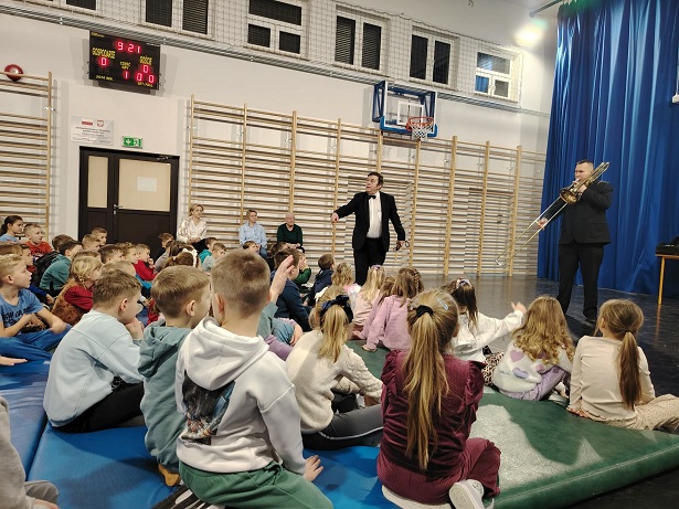 18 grudnia 2025r. w naszej szkole odbył się niezwykły koncert świąteczno-zimowy w wykonaniu grupy profesjonalnych muzyków filharmonistów z Lublina. Wydarzenie to było wyjątkową okazją do obcowania z muzyką graną na żywo, na prawdziwych instrumentach, co zrobiło na uczestnikach ogromne wrażenie.