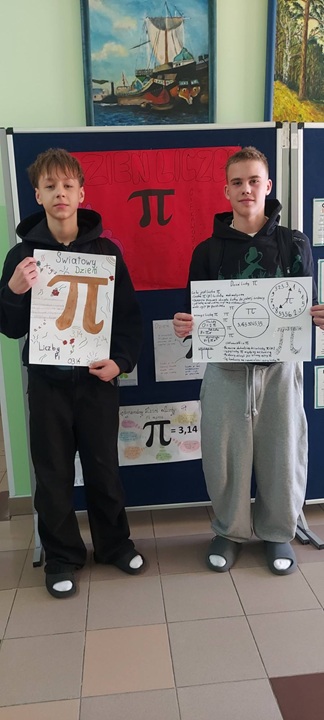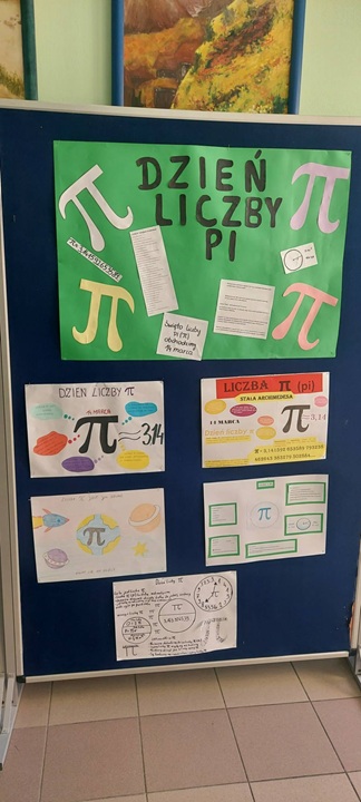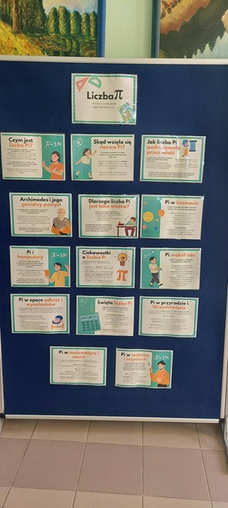 Uczniowie przygotowali plakaty tematyczne, na których przedstawili ciekawostki dotyczące liczby π, jej historię oraz zastosowanie w matematyce i nauce. Prace zostały zaprezentowane na szkolnym korytarzu, tworząc barwną i interesującą wystawę.