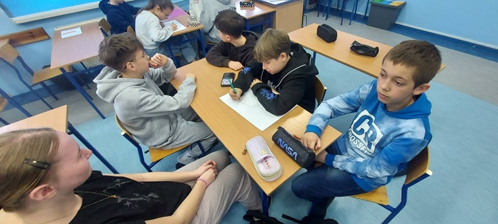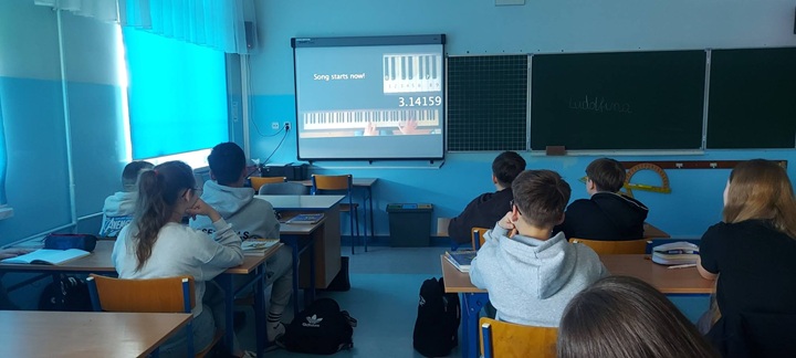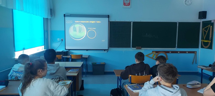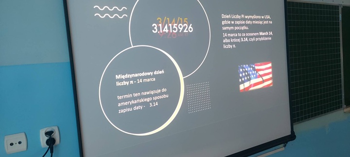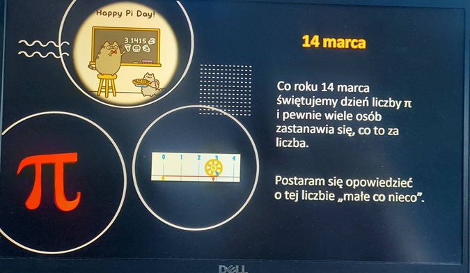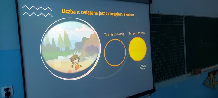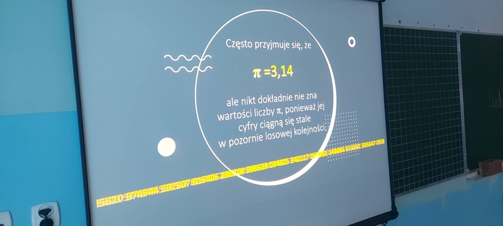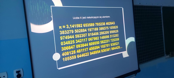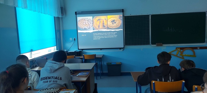 Podczas lekcji matematyki uczniowie obejrzeli prezentację multimedialną poświęconą liczbie π. Poznali jej historię, dowiedzieli się, skąd pochodzi jej symbol oraz gdzie liczba ta pojawia się w codziennym życiu i w różnych dziedzinach nauki.