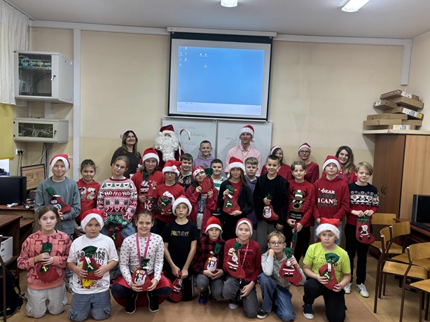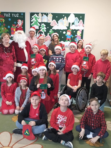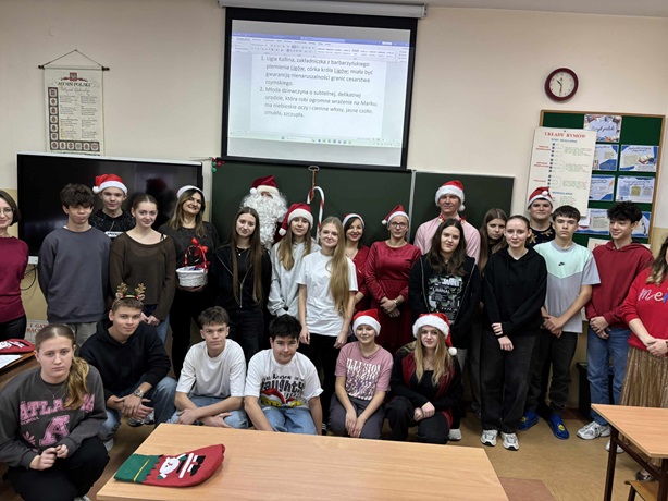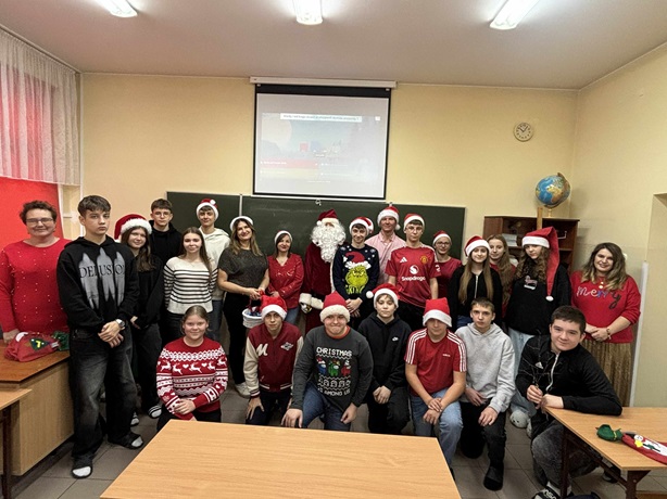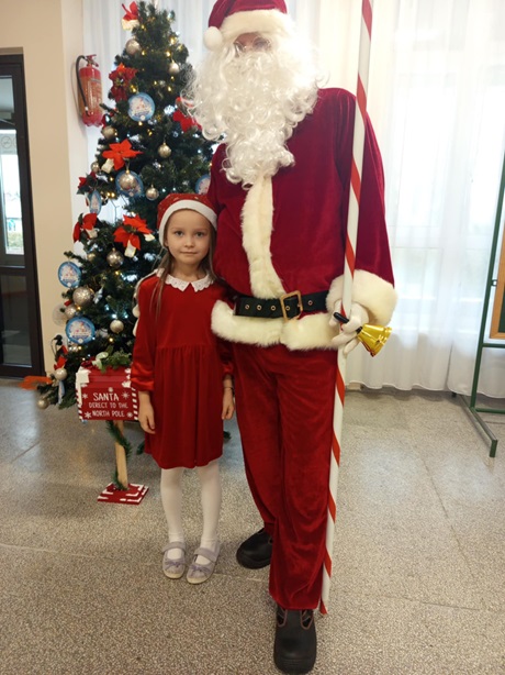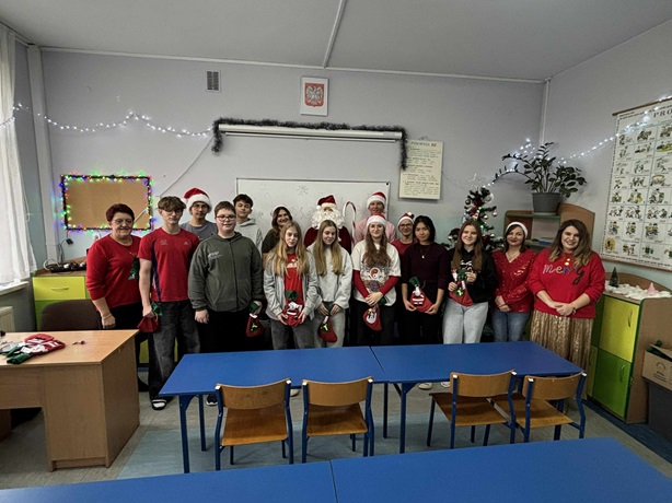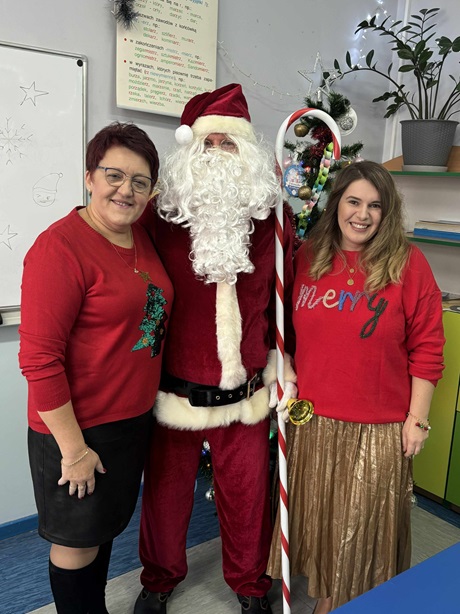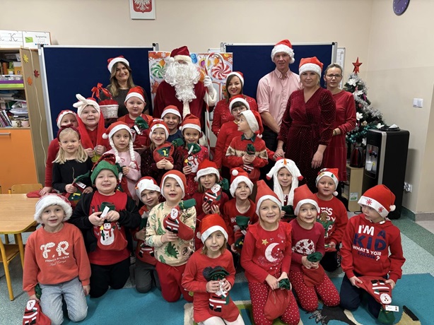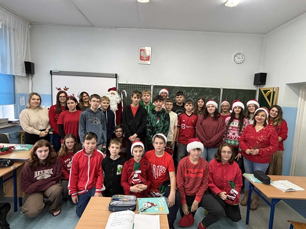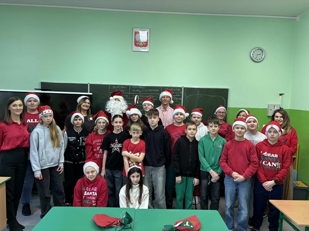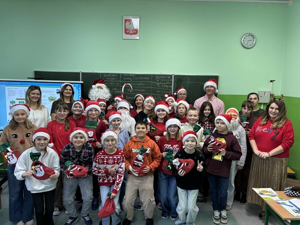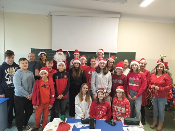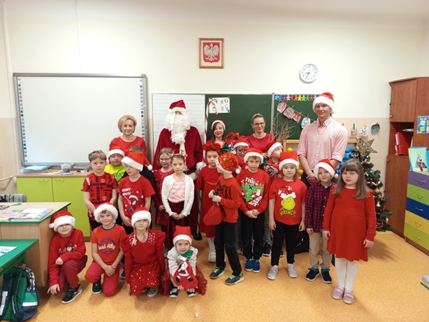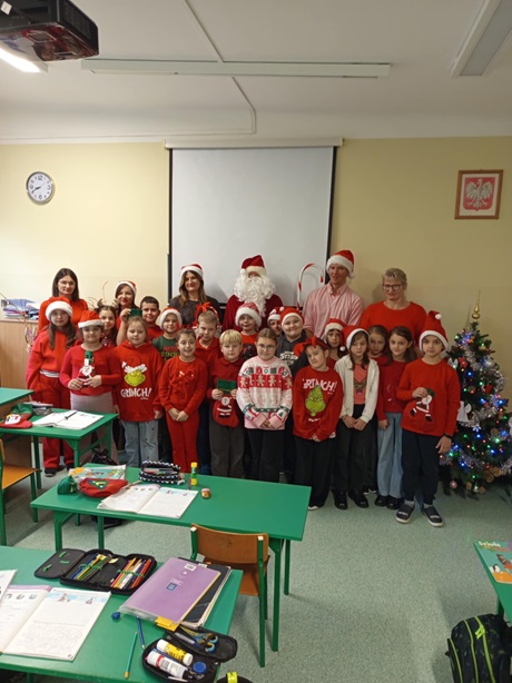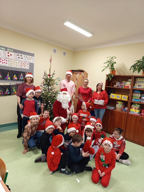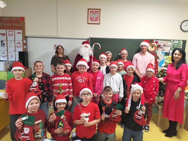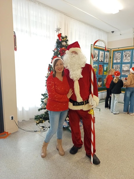 Największą atrakcją było spotkanie z Mikołajem, podczas którego każda klasa otrzymała symboliczny prezent. Wszyscy świetnie się bawili, a w powietrzu unosiła się prawdziwie świąteczna atmosfera.