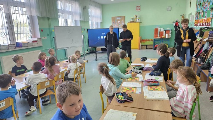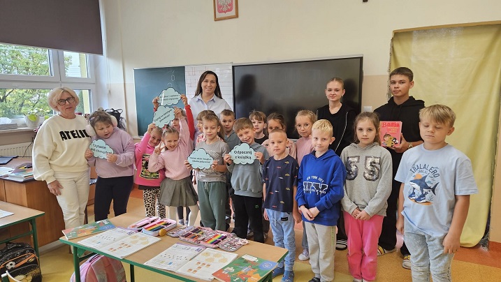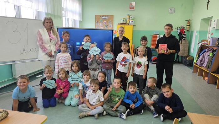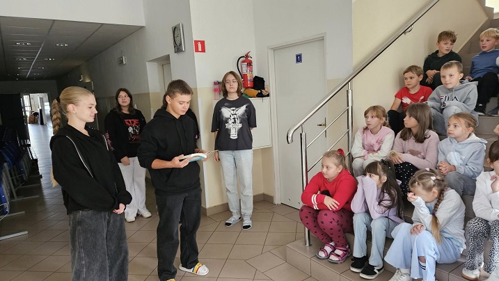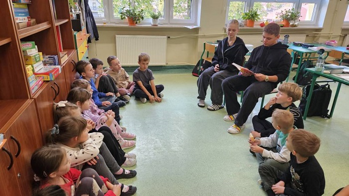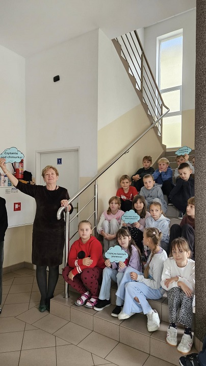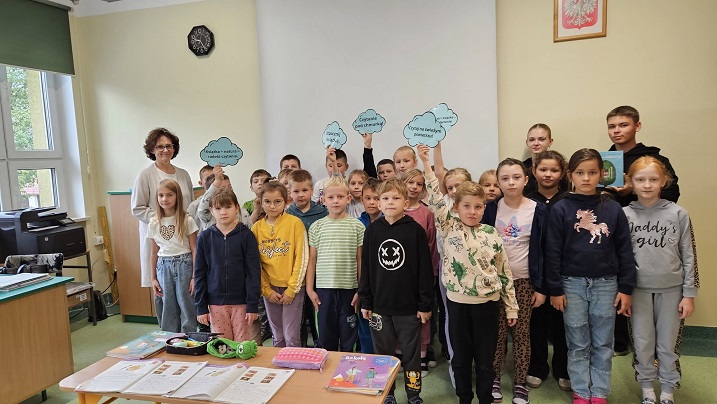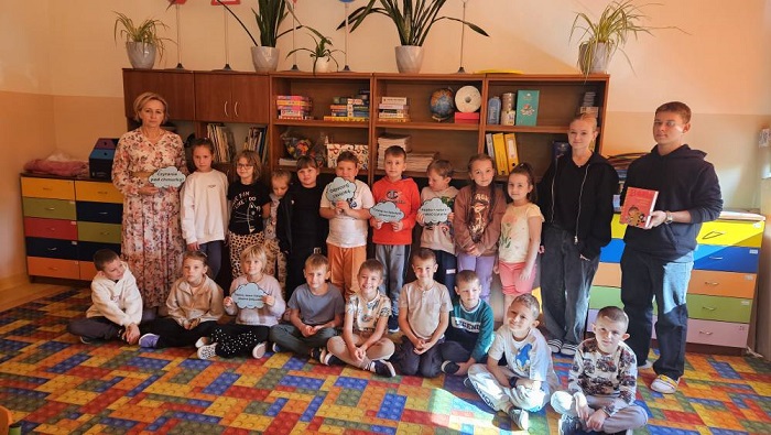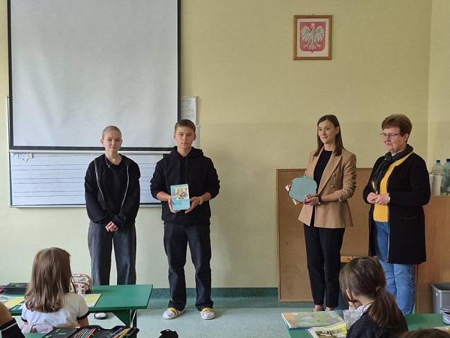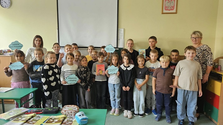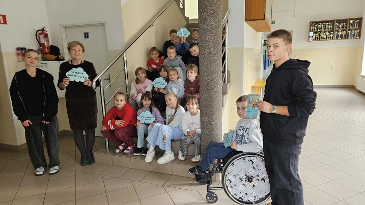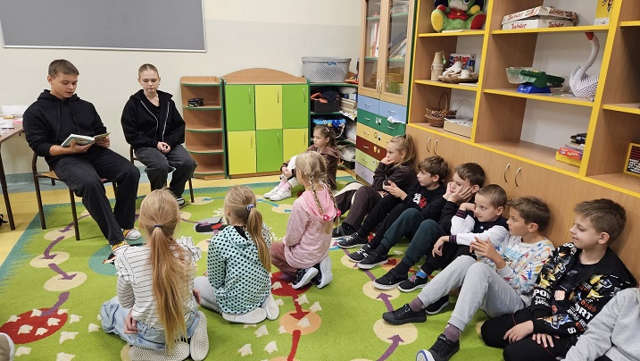 Młodsi uczniowie słuchali z ogromnym zainteresowaniem, a po czytaniu czekały na nich pytania do tekstu i zagadki literackie. Każdy uczestnik otrzymał również kolorową zakładkę do książki jako pamiątkę tego wyjątkowego wydarzenia.