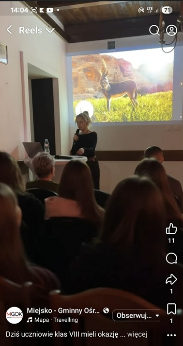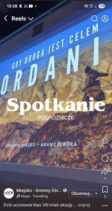25 lutego 2026 r. uczniowie klas VIII uczestniczyli w spotkaniu podróżniczym z panią Jolantą Suszko-Adamczewską.