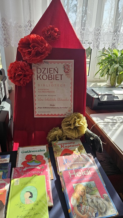 Przygotowaliśmy wiele ciekawych aktywności: wystawę książek „Silne bohaterki literackie”,