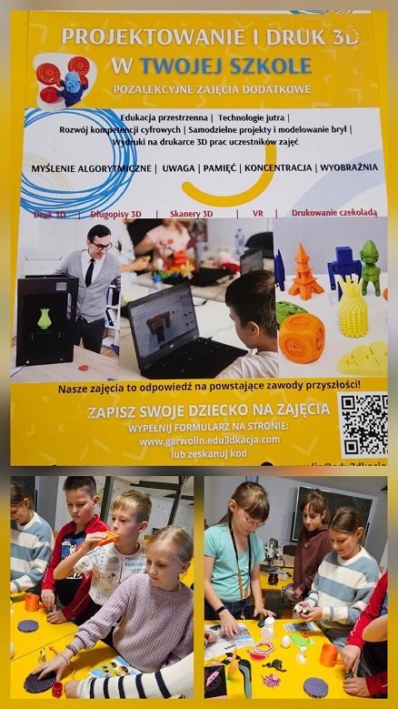 Tym razem dzieci przeniosły się do świata druku 3D i projektowania 3D. Podczas zajęć prowadzonych przez przedstawicielkę firmy Edu3dkacja uczniowie dowiedzieli się: