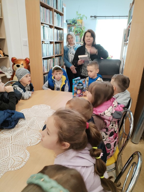 Na początku wizyty pani bibliotekarka serdecznie powitała dzieci i opowiedziała im, jak działa biblioteka. Przedszkolaki dowiedziały się: