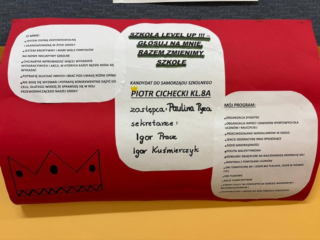 Nowym przewodniczącym Samorządu Uczniowskiego został Piotr Cichecki z klasy 8a.