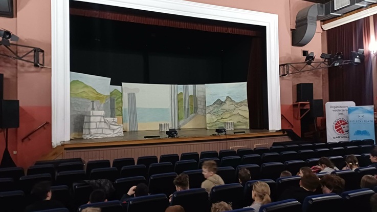 Następnie obejrzeliśmy spektakl mitologiczny „Widziane z Olimpu”. Przedstawienie przeniosło nas do starożytnej Grecji, gdzie poznaliśmy historię Prometeusza oraz bogów olimpijskich: Zeusa, Hery, Ateny, Hadesa i Posejdona