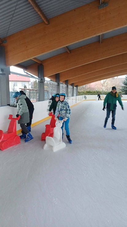 Tego dnia wybraliśmy się do Garwolina , gdzie aktywnie rozpoczęliśmy dzień na lodowisku. Uczniowie doskonalili swoje umiejętności jazdy na łyżwach, a niektórzy po raz pierwszy stanęli na lodzie – i poradzili sobie świetnie! Nie obyło się bez drobnych, zupełnie niegroźnych upadków ale każdy szybko wracał na nogi i jechał dalej!