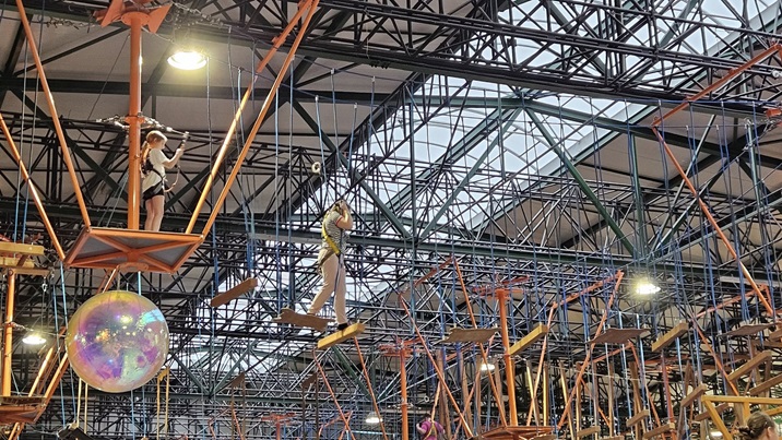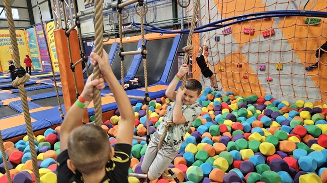 Pierwszym punktem programu była Stacja Grawitacja, gdzie dzieci mogły wyskakać się do woli, skorzystać z parku linowego i spróbować swoich sił na ściankach wspinaczkowych.