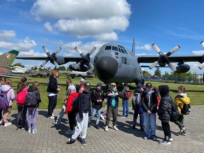 W dniu 6 maja 2025 r. klasy trzecie pod opieką p. Małgorzaty Baran, p. Barbary Kępki, p. Danuty Stępień oraz p. Beaty Kondej odwiedziły dęblińskie Muzeum Sił Powietrznych. Podczas wycieczki do muzeum uczniowie poznali historię polskiego lotnictwa wojskowego, sprzęt przygotowujący do szkolenia pilotów, liczne ekspozycje i umundurowania pilotów. Natomiast na ekspozycjach zewnętrznych obejrzeli eksponaty wielkogabarytowe, w tym samoloty, helikoptery i artylerię przeciwlotniczą. Do niektórych spośród 80 statków powietrznych można wchodzić, a nasi uczniowie mieli również taką możliwość! Weszli na pokład kilku maszyn, w tym samolotu prezydenckiego, który służy do przewożenia najważniejszych osób w państwie. Zwiedzaniu towarzyszyły ogromne emocje z powodu wielkości maszyn oraz ich różnorodności.